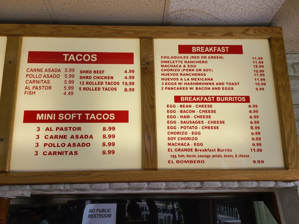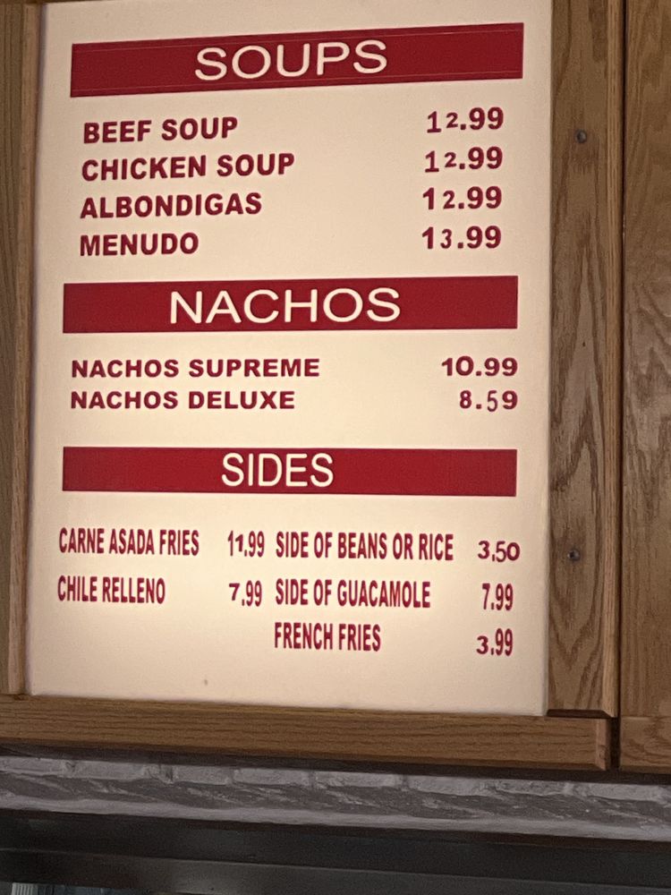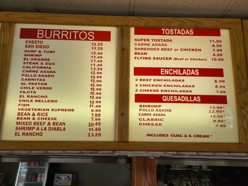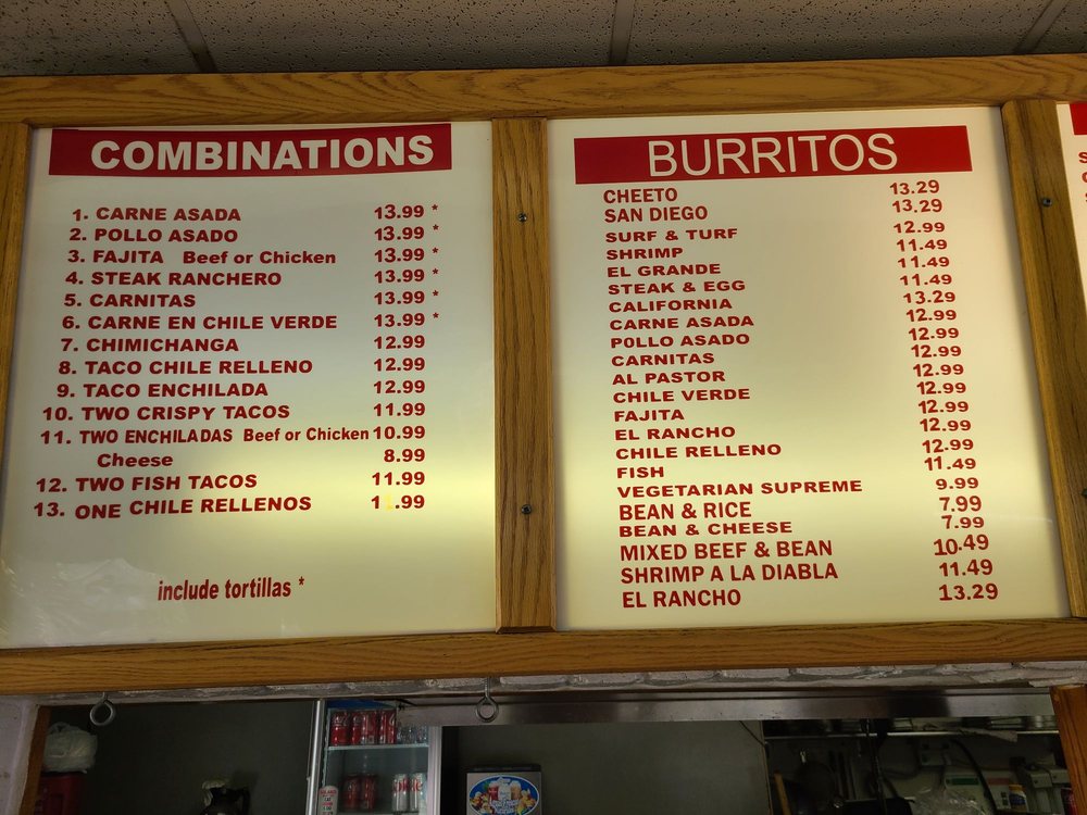 Rancho Villa's Menu